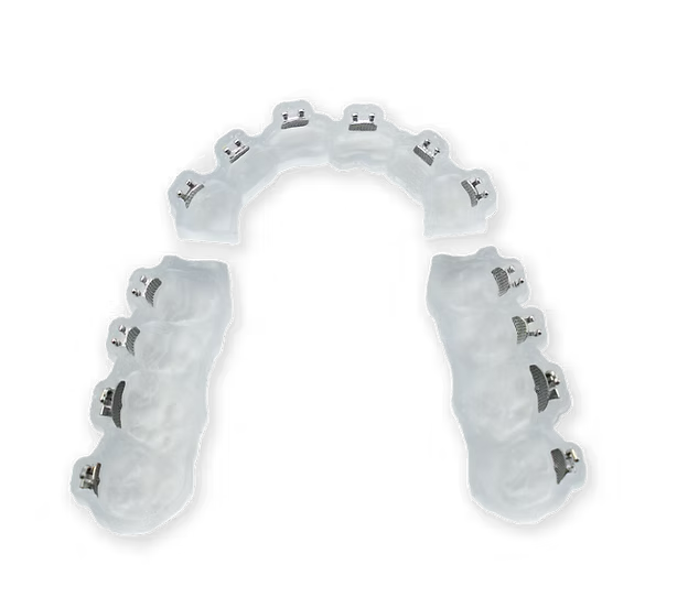 • A customized 3D printed braces bonding tray is fabricated in order to put the brackets right where we want them.